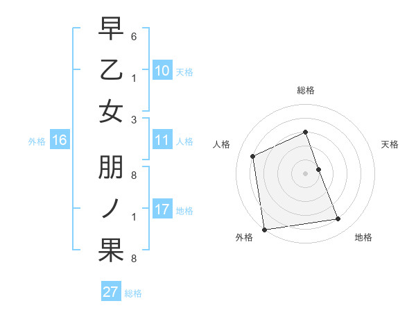 早乙女 朋ノ果さんの外格は16画の5点!