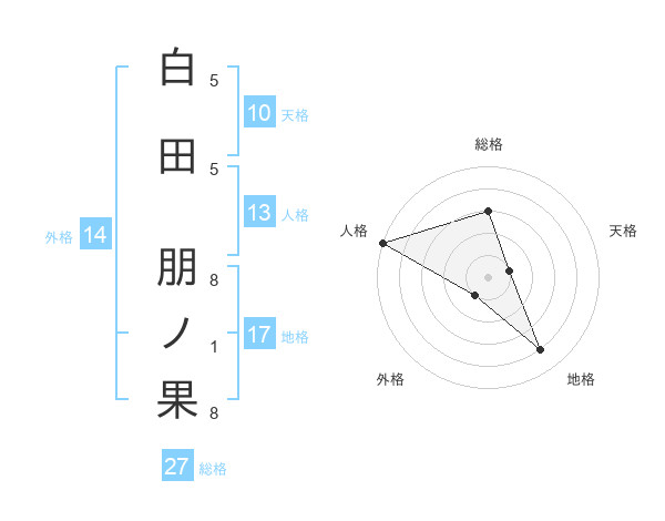 白田 朋ノ果さんを姓名の画数から五運を鑑定