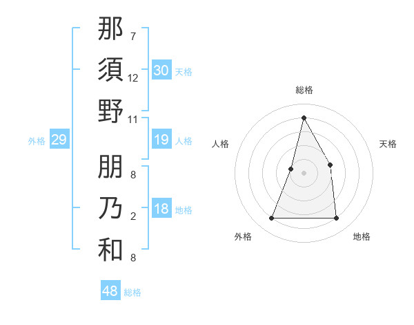 那須野 朋乃和さんの天格は30画の2点!