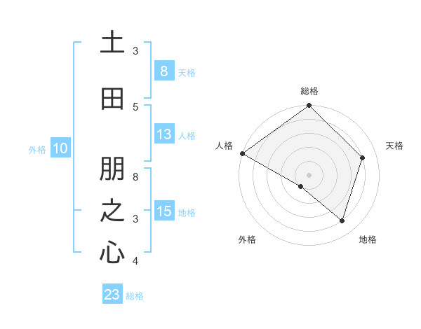 土田 朋之心さんを姓名の画数から五運を鑑定
