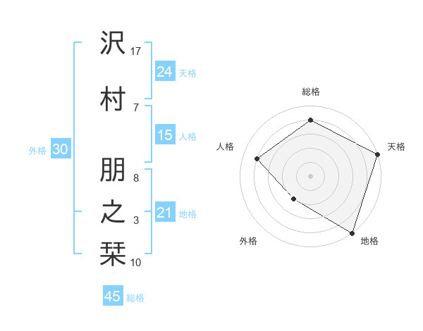 沢村 朋之栞さんを姓名の画数から五運を鑑定