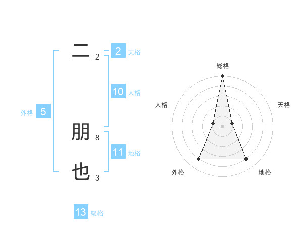 二 朋也さんの総格は13画の5点!