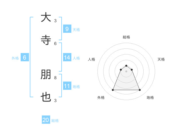 大寺 朋也さんを姓名の画数から五運を鑑定