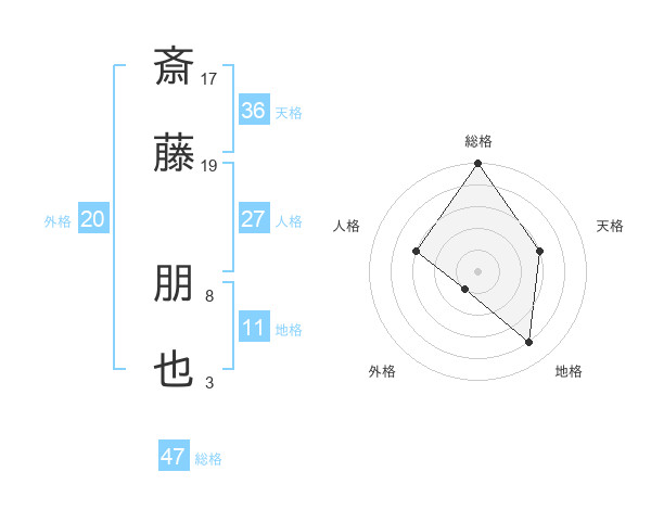 斎藤 朋也さんを姓名の画数から五運を鑑定