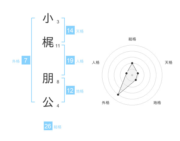 小梶 朋公さんを姓名の画数から五運を鑑定