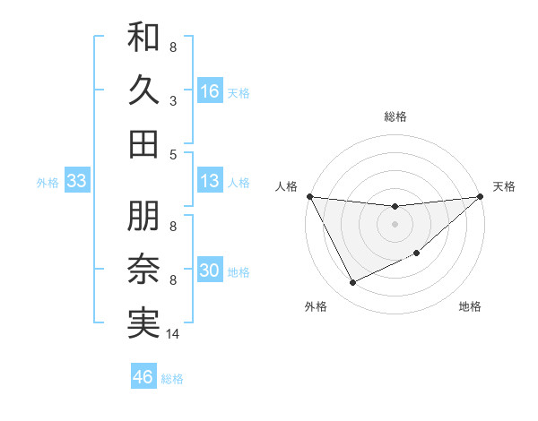 和久田 朋奈実さんを姓名の画数から五運を鑑定