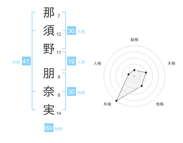 那須野 朋奈実さんを姓名の画数から五運を鑑定