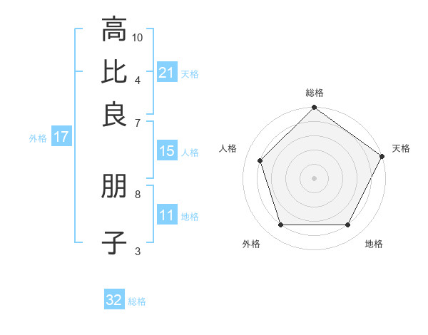 高比良 朋子さんを姓名の画数から五運を鑑定