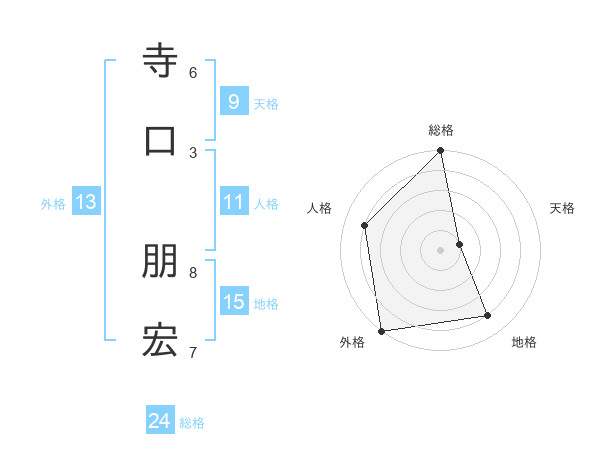 寺口 朋宏さんの総格は24画の5点!