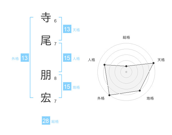 寺尾 朋宏さんの天格は13画の5点!