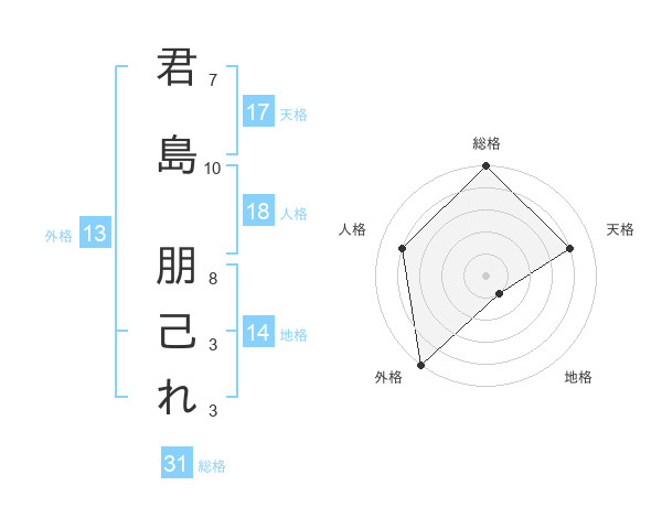 君島 朋己れさんを姓名の画数から五運を鑑定
