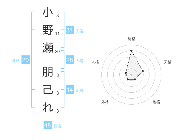 小野瀬 朋己れさんを姓名の画数から五運を鑑定
