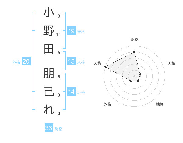 小野田 朋己れさんを姓名の画数から五運を鑑定
