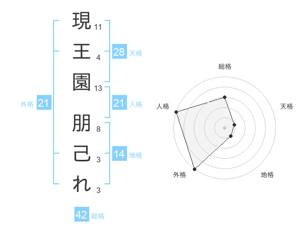 現王園 朋己れさんを姓名の画数から五運を鑑定