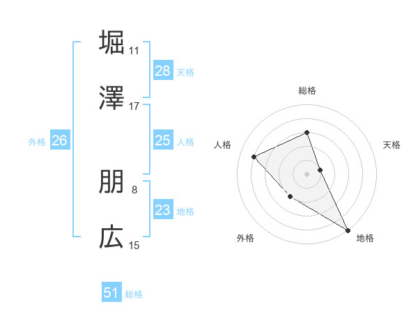 堀澤 朋広さんを姓名の画数から五運を鑑定