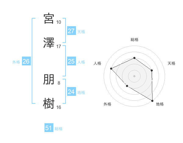 宮澤 朋樹さんを姓名の画数から五運を鑑定