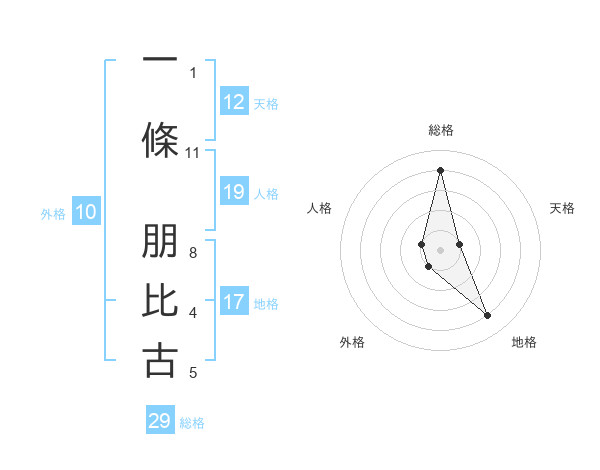 一條 朋比古さんの外格は10画の1点!