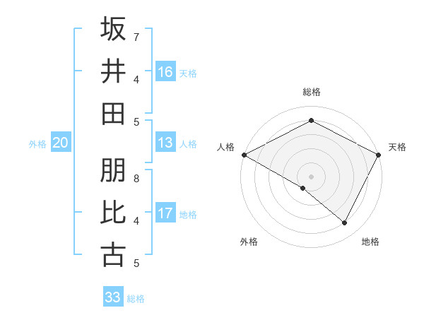 坂井田 朋比古さんの総格は33画の4点