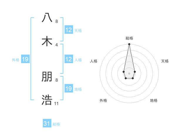 八木 朋浩さんの総格は31画の5点!