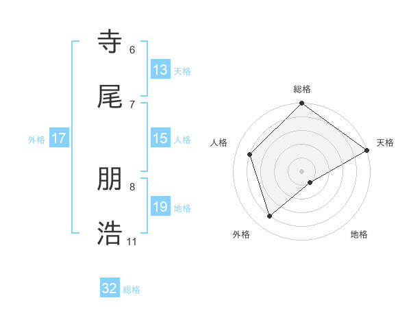 寺尾 朋浩さんを姓名の画数から五運を鑑定