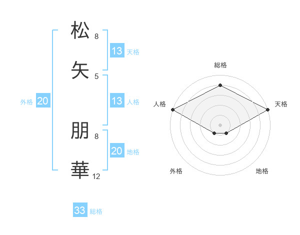 松矢 朋華さんの天格は13画の5点!