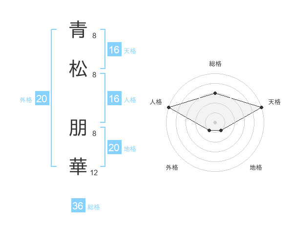青松 朋華さんの天格は16画の5点!