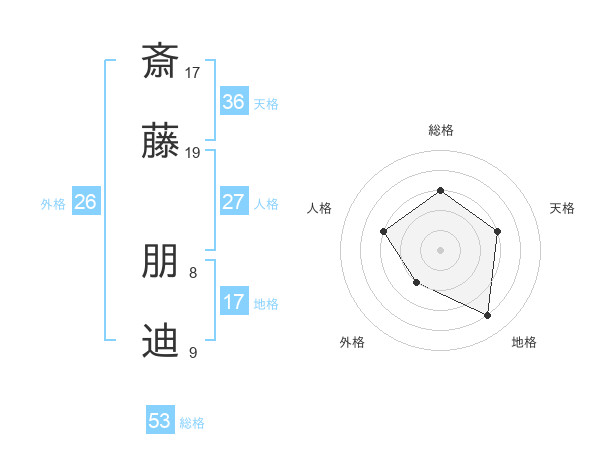 斎藤 朋迪さんの総格は53画の3点!