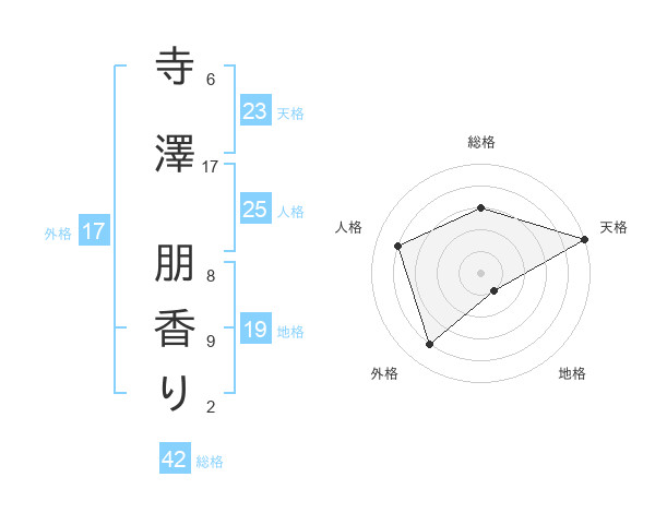 寺澤 朋香りさんを姓名の画数から五運を鑑定