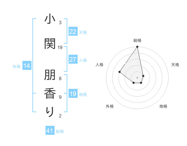 小関 朋香りさんを姓名の画数から五運を鑑定