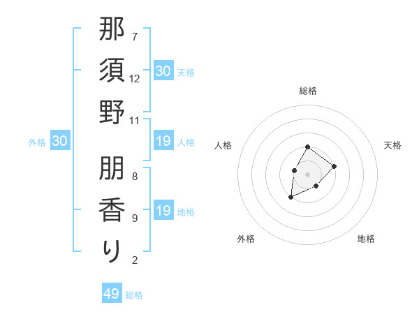 那須野 朋香りさんを姓名の画数から五運を鑑定