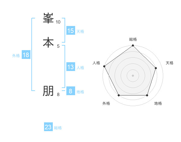 峯本 朋さんの総格は23画の5点!