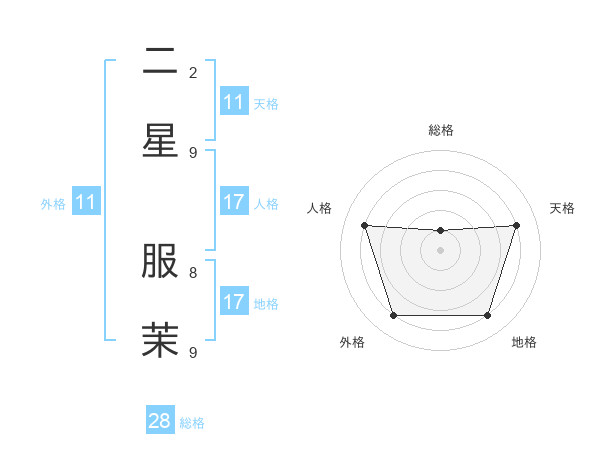 二星 服茉さんの地格は17画の4点!