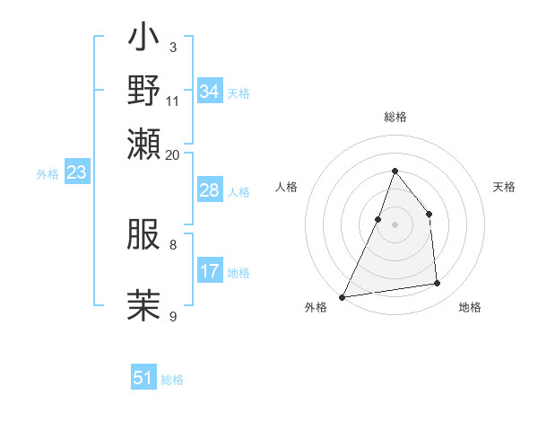 小野瀬 服茉さんの総格は51画の3点!