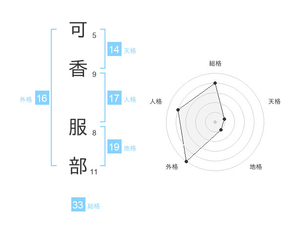 可香 服部さんの外格は16画の5点!