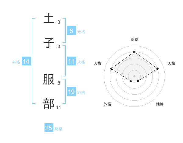 土子 服部さんの総格は25画の4点!