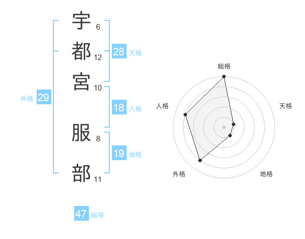 宇都宮 服部さんの総格は47画の5点!
