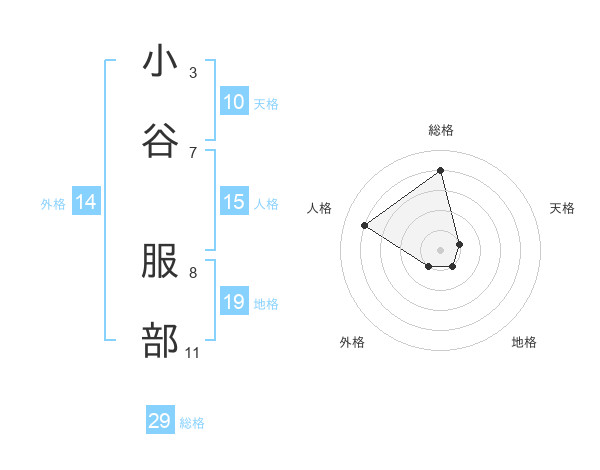 小谷 服部さんの総格は29画の4点!