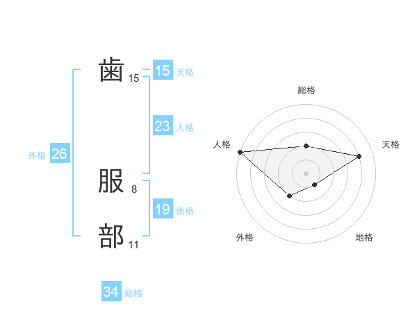 歯 服部さんの外格は26画の2点!