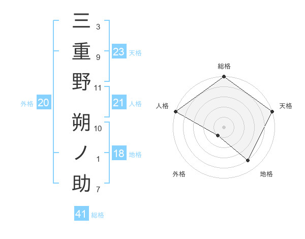 三重野 朔ノ助さんを姓名の画数から五運を鑑定