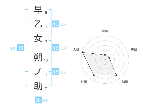 早乙女 朔ノ助さんを姓名の画数から五運を鑑定