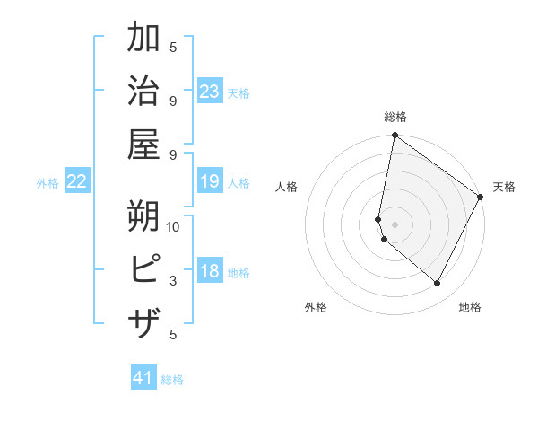 加治屋 朔ピザさんを姓名の画数から五運を鑑定