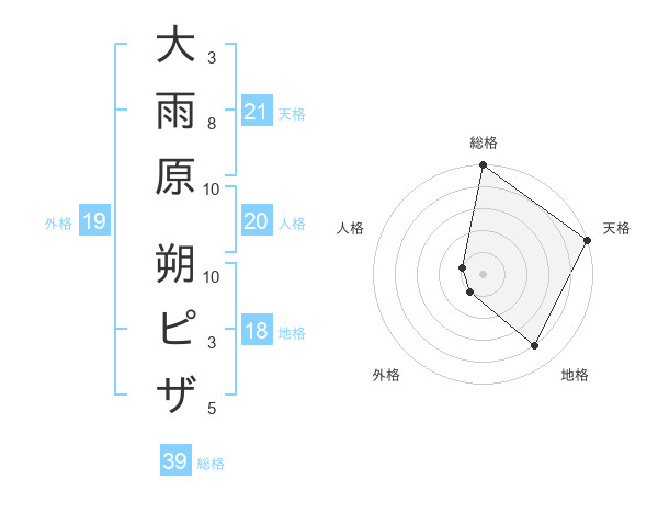 大雨原 朔ピザさんを姓名の画数から五運を鑑定