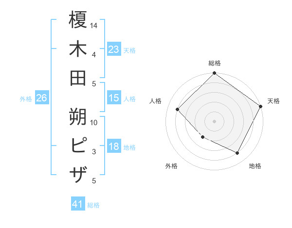 榎木田 朔ピザさんを姓名の画数から五運を鑑定