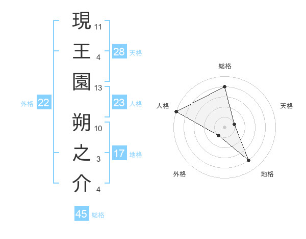 現王園 朔之介さんを姓名の画数から五運を鑑定