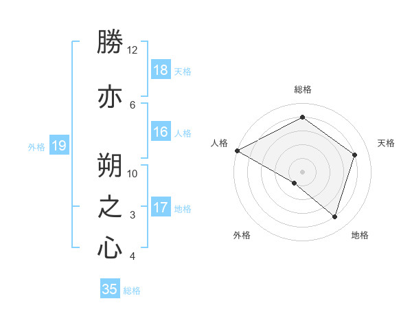 勝亦 朔之心さんの天格は18画の4点!