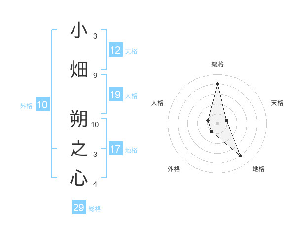 小畑 朔之心さんを姓名の画数から五運を鑑定