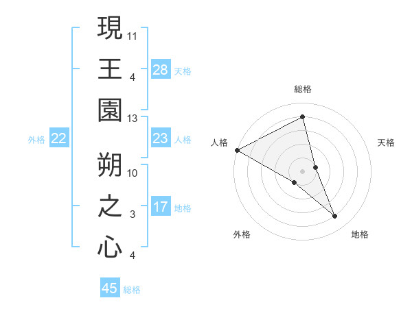 現王園 朔之心さんを姓名の画数から五運を鑑定