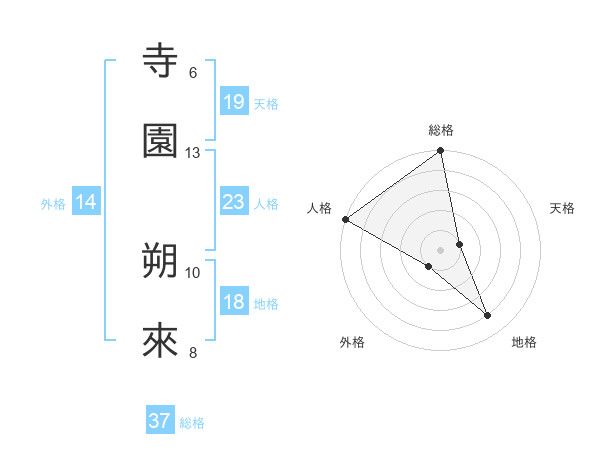 寺園 朔來さんの総格は37画の5点!