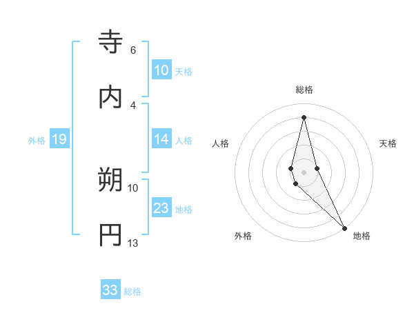 寺内 朔円さんの総格は33画の4点!