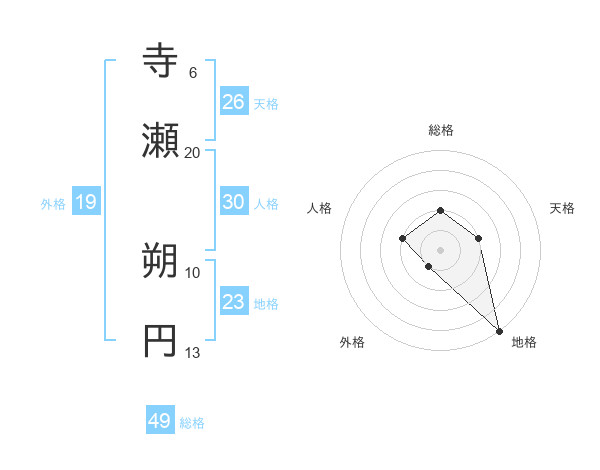 寺瀬 朔円さんの総格は49画の2点!